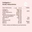 Wasser, Kollagen, L-Ascorbinsäure (Vitamin C), Säureregulator (Zitronensäure), Natriumhyaluronat (Hyaluronsäure), L-Lysin HCl, Polygonum-Trockenextrakt (Polygonum cuspidatum, Wurzel), Beta-Carotin (Vitamin A) [modifizierte Stärke, Glukosesirup, Beta-Carotin (Vitamin A), mittelkettige Triglyceride, Wasser, Antioxidationsmittel [Alpha-Tocopherol], Füllstoff (Calciumphosphate]], Beerenaroma, Zinksulfat, Konservierungsstoffe (Kaliumsorbat und Natriumbenzoat), Füllstoff [Xanthangummi], Süßstoff (Sucralose), Coenzym Q10, Natriumselenit, D-Biotin (Biotin).Gebrauchsanweisung